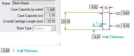 Derivata dalla consorella Steyr è leggermente più lunga, ha avuto grande successo in Italia prima dell'avvento del 9x21, dove per superare il divieto di detenzione del 9x19 e del 38 super auto, questa munizione fu camerata per quasi tutte le semiauto importate. Le tabelle sono uguali a quelle della 9x19 e 9x21.