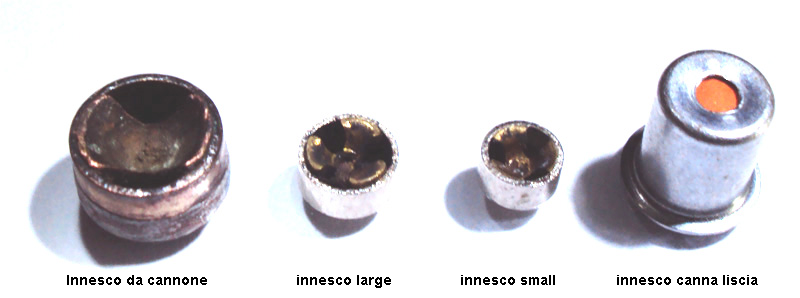 Ora; se un piccolo innesco come quello che vediamo a sinistra riesce a far sparare un bossolo da cannone lungo 28 cm. e largo 7,5 cm. come possono gli altri non riuscire ad accendere pochi grani di polvere in bossoli non più lunghi di 6 cm. ?